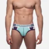 ACTIVATE Briefs really highlight a combination of use in fabrics. its multi panel body is comprised of various colors in both cotton and mesh along with contrasted piping and stitching on angles that accentuate the body. The cotton backside and pouch deliver comfort and breathability. Topped by the PUMP! signature waistband, this brief activates everyone.