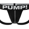 Black Jock-Strap made from nylon rib. The cup is accented with white stitching and black piping for a stylish contrast. The 50mm waist elastic is wide, black, soft yet sturdy with ultimate stretchability and hold. Our Black Jock goes hand in hand with the comfort our men have come to expect from PUMP! products.