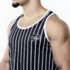 Elevate your style with a timeless twist. This black and white tank top delivers a sleek, baseball-inspired design with classic stripes, all wrapped in a lightweight fabric made from recycled PET bottles. The quick-drying technology allows you to stay fresh despite constant movement.