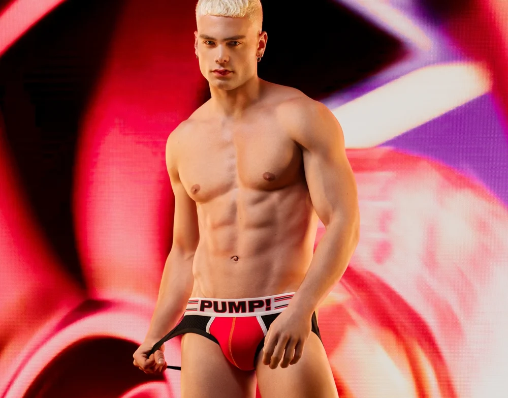 Wearing PUMP!’s Circuit Jock is the only time you’ll be happy to bottom out. The classic black mesh body topped with a wide waistband featuring eye-catching stripes and the PUMP! logo is supercharged with a Redhot front, mesh cup all providing a secure and comfortable fit. With supportive back elastics that perfectly lift and emphasize your assets, no one will want to pass you.