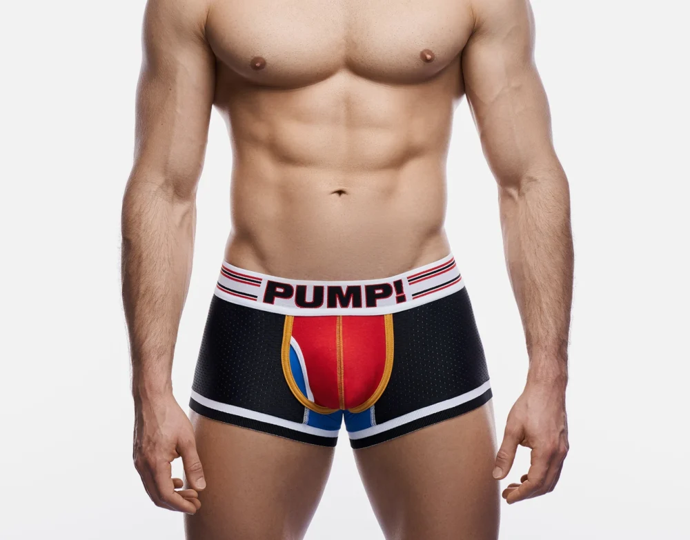 Set a new pace for your underwear collection with the Circuit Touchdown Boxer. The wide, white waistband featuring a red and black classic PUMP! logo ensures a secure fit, no matter how fast you live life. The checkered-flag-inspired black mesh body, highlighted with bright white leg elastics and an electric blue undercarriage, forms to your curves while providing unmatched breathability to keep you going all day in comfort and style.