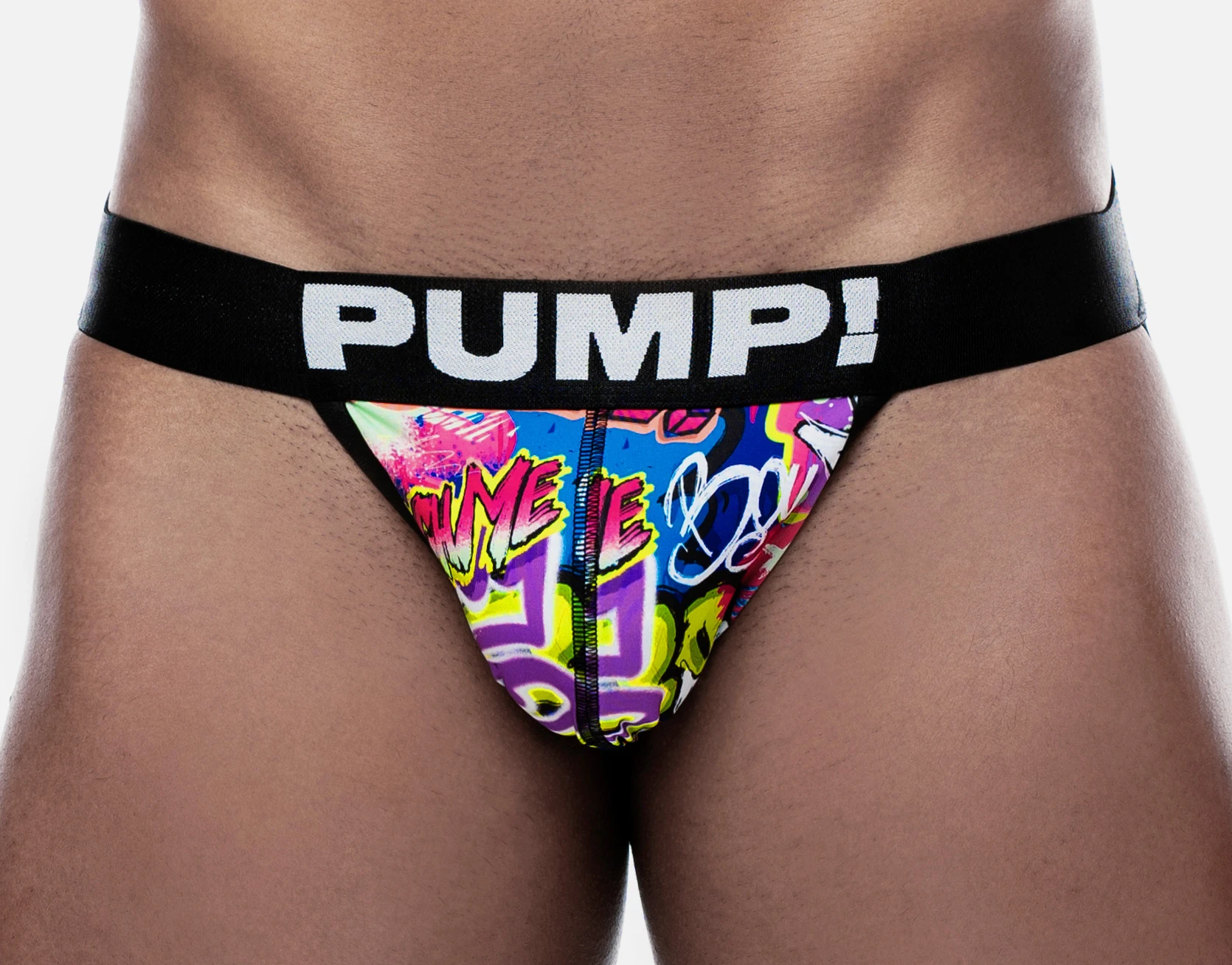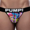 Less is more with PUMP!’s Drip Jock. The microfiber cup, lined with breathable cotton, provides a secure, dry place for your goods. Black supportive elastics lift your rear assets for a fit that will definitely keep you comfortable. The unique print up front is created with the environment in mind, using a waterless printing process and every meter of its fabric using 12 recycled PET bottles.