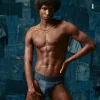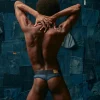 The Indigo Blue Thong draws from the deep tones and character of indigo denim, reinterpreted through the Washed universe. Its textured print is inspired by the patterned surface of a washing machine drum, giving the piece a distinctive industrial character. Minimal in coverage yet bold in identity, it brings together confident styling and the raw spirit of denim culture.