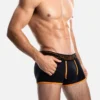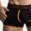 The NightLight Jogger is a garment that is designed to give you comfort while wearing with its black cotton body, black mesh pockets, attached thanks to its 45 mm black and orange elastic waistband and a black micromesh cup with tone on tone stitching.