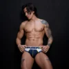 The RECHARGE Jock is as sexy as always and has a classy yet edgy twist. We’ve added large webbed mesh front panels with a soft stretchy cotton liner which tie in perfectly to the front leg and large super supportive butt elastics. It has a double layered cup for extra comfort and support with contrast piping along the cup and the front panel for that extra touch.