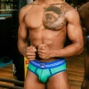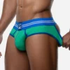 Round2 Retro green Backless Brief, designed for those who appreciate freedom in both movement and style. The ribbed retro green fabric, accented by clean white piping, creates a fresh, modern look. Its backless design offers unmatched breathability, while the elastic waistband ensures a secure fit. Perfect for everyday wear or when you want to make a subtle statement, this brief combines comfort, practicality, and a bold edge that fits effortlessly into your lifestyle.
