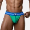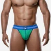 Dare to be different with the Round2 retro green Thong. Featuring retro green ribbed fabric and blue accents, this minimalist design pairs allure with everyday functionality. The backless G-string silhouette allows for complete freedom of movement, while the elastic waistband ensures a snug fit. Comfortable and daring, the Round2 retro green Thong is for those who embrace individuality and enjoy making bold choices in their everyday wear.