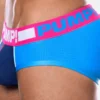What more could you want in color than a vibrant pink elastic waistband, a beaming baby blue body and a piercing dark navy cup? It doesn’t stop there because the form fitting elastic is complimented by breathable full body mesh and an all comfort all cotton cup.