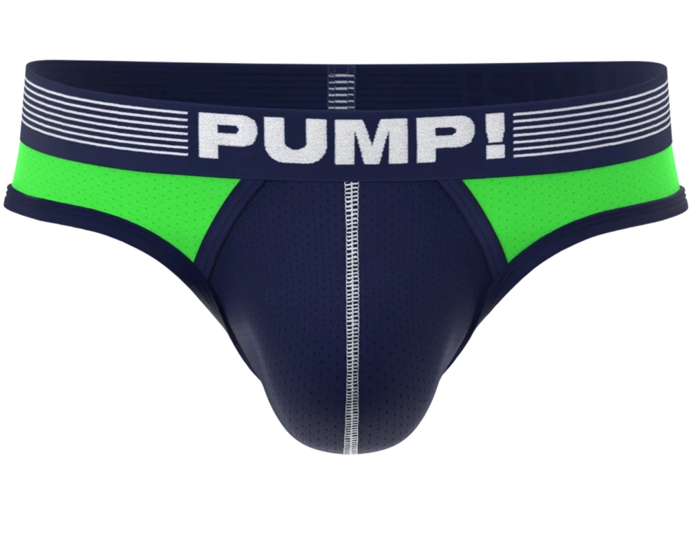 Let your revealing side Surge with this thong. The brief-style silhouette and low-rise fit offer a sleek and eye-catching look while the navy-blue mesh cup, lined with soft cotton, ensures fresh support. Add a touch of color and uniqueness to your wardrobe with the neon green mesh yoke and navy-blue microfiber piping.