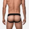 Switch Jock features a Wide 50mm black elastic waistband, Black Chrome threaded tone on tone logo and Black large webbed-mesh cup lined with cotton while simultaneously taking care of the backside with a Black triple band rear elastic for greater lift and support.