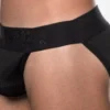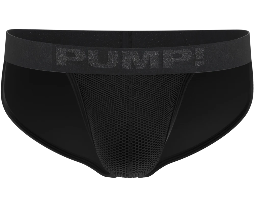 Our PUMP! Switch SideCut Brief features an Open-sided Brief design that ensures a wide open comfortability thanks to its Wide 50mm black elastic waistband with Black Chrome threaded tone on tone logo, Black large webbed-mesh cup lined with cotton, and Full cotton back with lifting elastics for maximum comfort.