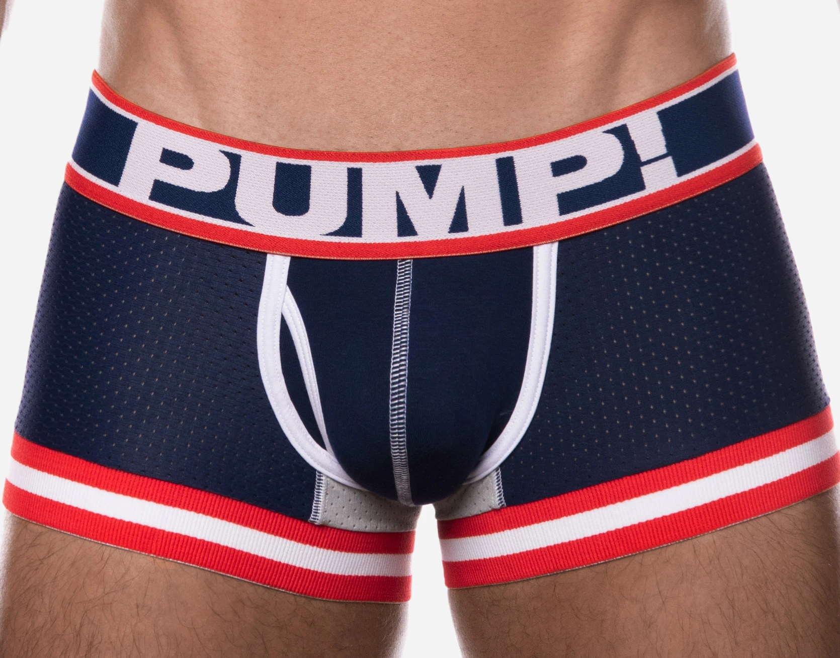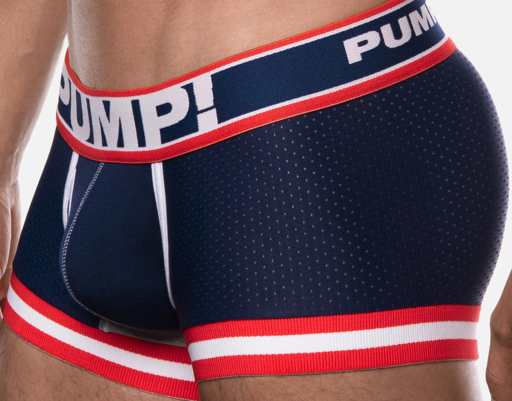 The Touchdown Big League Boxer is designed for comfort with a navy blue full mesh body that is complemented by a navy blue cotton cup with white stitching and a 45 mm navy blue, white and red elastic waistband with PUMP! logo to accompany you at any time of the day no matter what your outfit is.