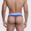 - Red microfiber piping around cup, legs and crotch.