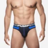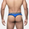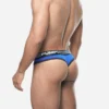 Feel the buzz with the Volt Thong’s dynamic design! The electric blue mesh cup lined with cotton ensures breathability and support. Its brief-style silhouette and low-rise fit offer a modern look, complemented by the black and white waistband and the electric blue stitching, making this thong a vibrant everyday essential.