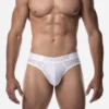 - 40mm matt white waistband with satin logos